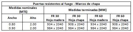 Marco y hoja de chapa: marco de chapa N 18 con bisagras a munición reforzadas, burletes intumescentes. Hoja doble contacto y cerradura.
